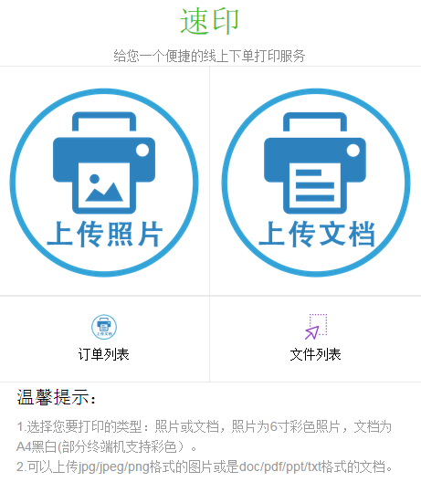 文檔編輯完成——點擊打印按鈕——在云端服務平臺上傳文件——到自助設備刷卡取文件。